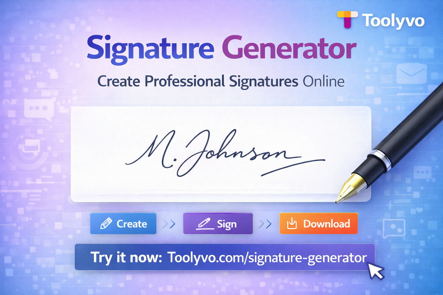 Create professional email signatures online for free. Generate clean, modern signatures for Gmail, Outlook, and more with Toolyvo.