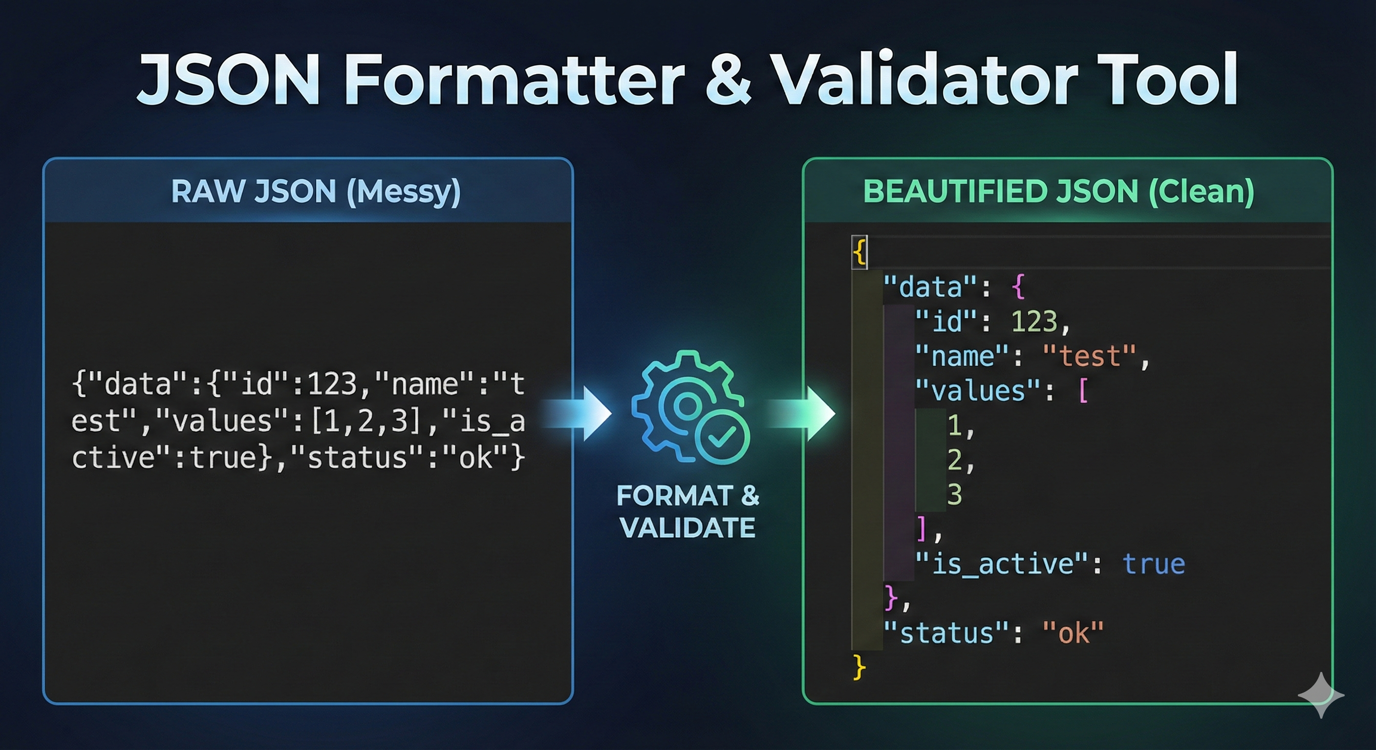 Struggling with messy JSON code? Use our free JSON Formatter to validate, beautify, and minify your data instantly. Perfect for developers and API debugging